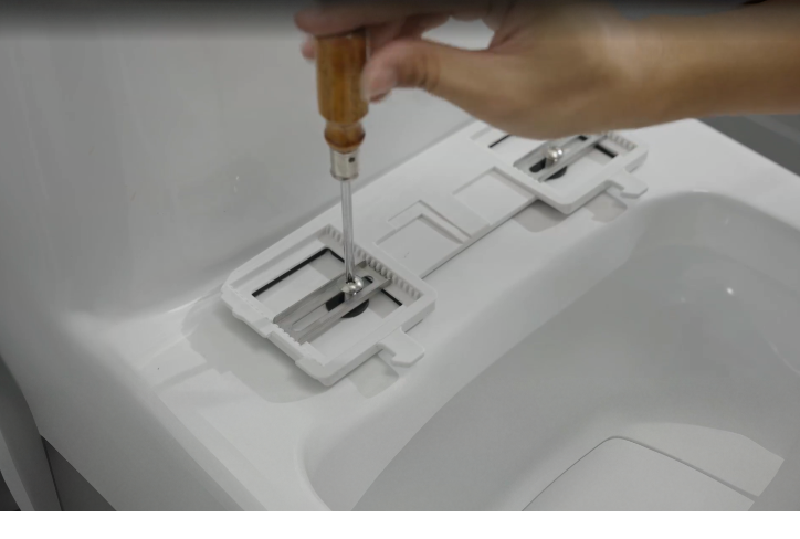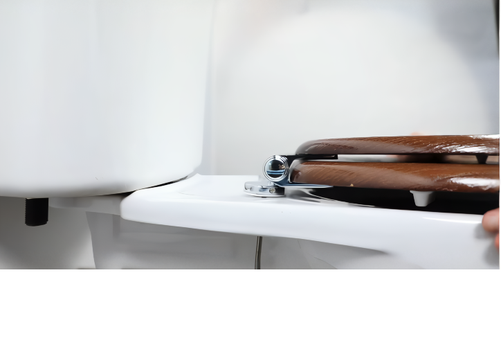 • Hold onto the fixing underneath the toilet firmly while unscrewing the toilet seat bolts from the top.